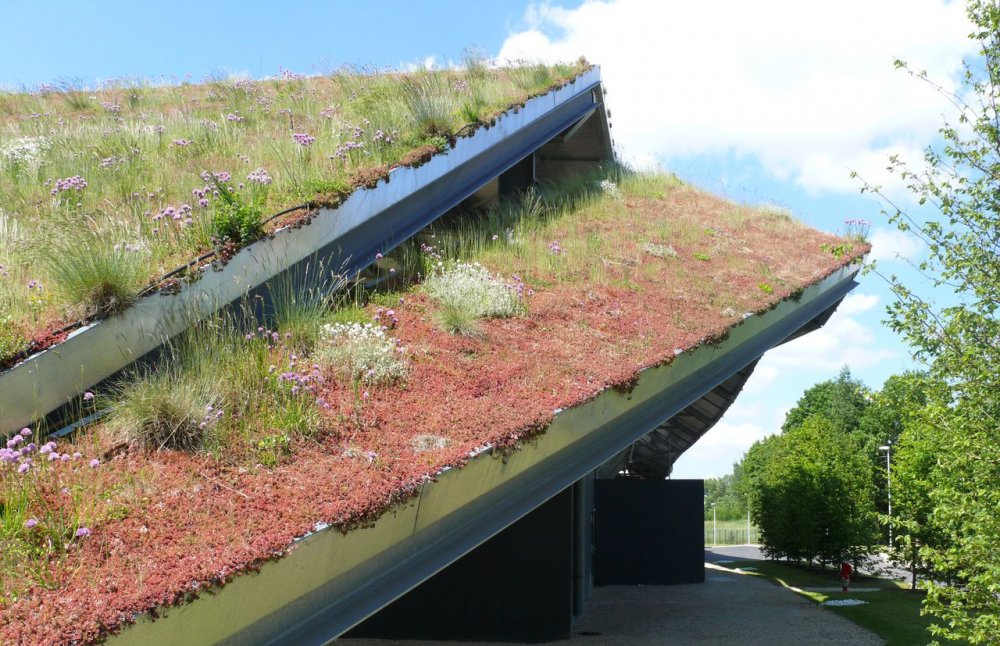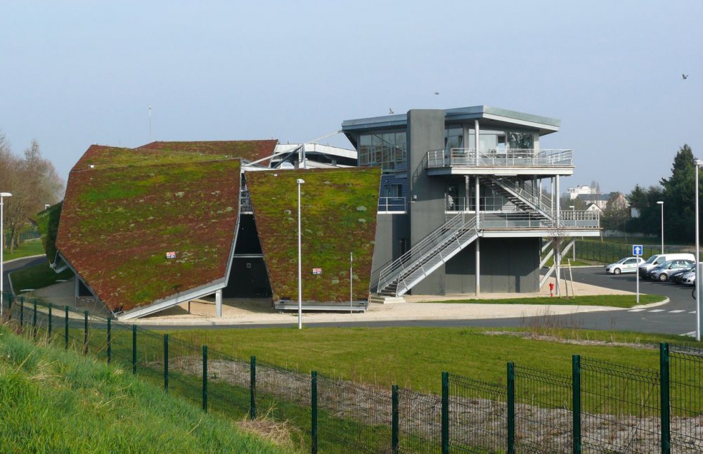 • Les principaux partis pris de la station de traitement des eaux usés de l’Ile Arrault à Saint-Pryvé-Saint-Mesmin (Loiret) en font une réalisation exemplaire en termes de développement durable : couverture végétalisée, utilisation de matériaux naturels et respectueux de l’environnement, une occupation réduite de 50 % laissant la place à un jardin public, des panneaux photovoltaïques, moins de nuisances visuelles, olfactives et sonores…